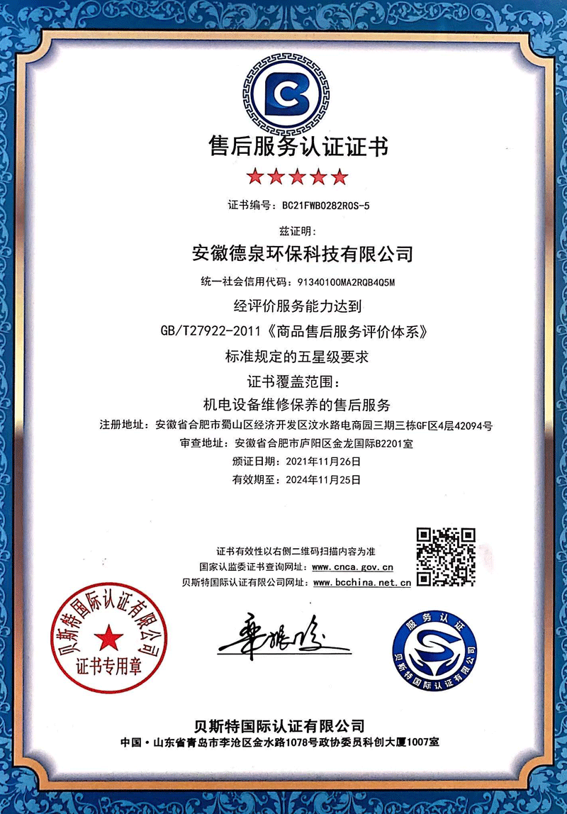 安徽德泉環(huán)保科技有限公司致力于廢水、廢氣、固廢技術(shù)處理研發(fā)、設(shè)計(jì)、施工及運(yùn)營(yíng)管理,從事環(huán)保設(shè)備及設(shè)施的制造和銷(xiāo)售,為環(huán)保項(xiàng)目系統(tǒng)提供專(zhuān)業(yè)的技術(shù)咨詢(xún)和服務(wù)。是一家集建筑勞務(wù)分包,工程總承包(EPC)、項(xiàng)目投資(BOT/PPP)、運(yùn)營(yíng)管理(O&M)于一體的綜合性新型高科技企業(yè)。